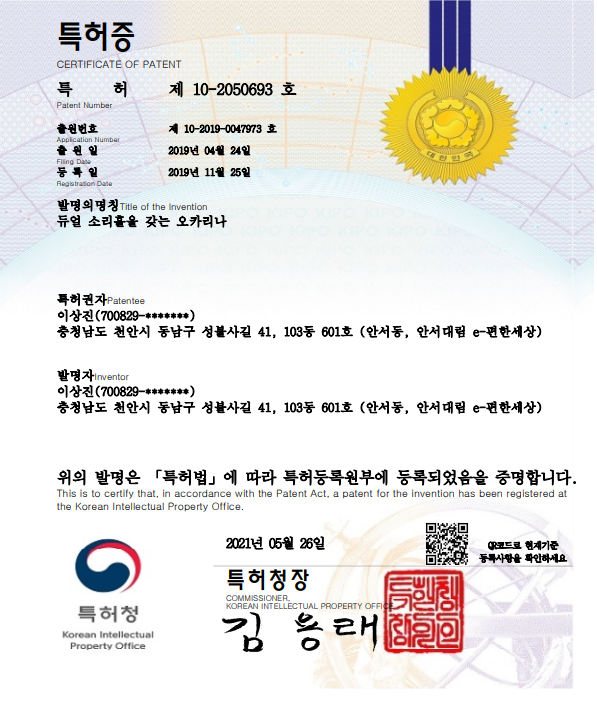 "진 더블엣지 (돼지코 오카리나)"는 기존의 엣지가 1개인 오카리나와 차별화 되어 제작된 제품으로 2개의 엣지홀을 가지며 기존 오카리나에 비하여 음색이 밀도감 있고 울림이 풍부합니다.